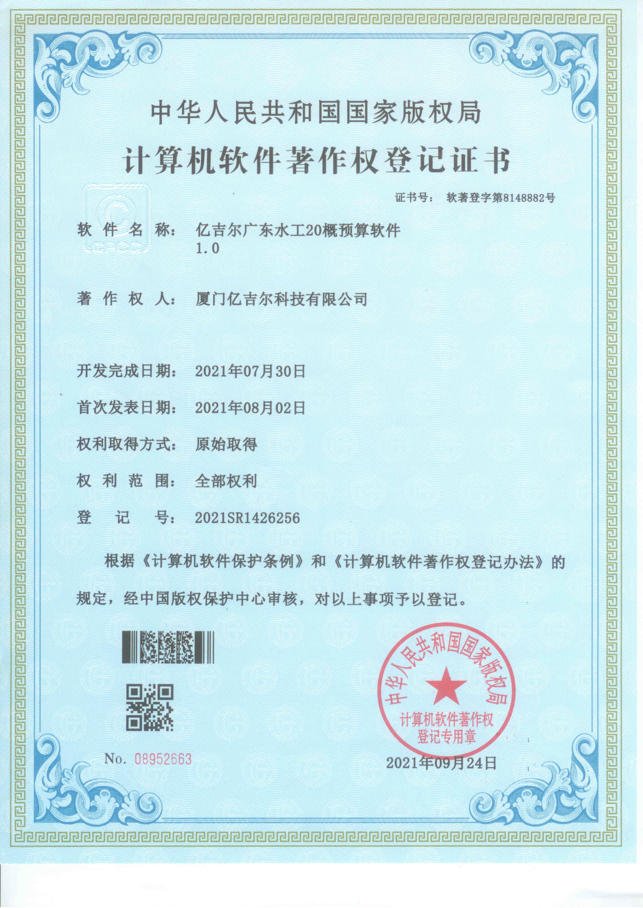 億吉爾廣東水工20概預(yù)算軟件著作權(quán)登記證書 發(fā)布日期:2023年11月22日 瀏覽次數(shù):601 關(guān)鍵字: 公司 1/1億吉爾廣東水工20概預(yù)算軟件著作權(quán)登記證書_1